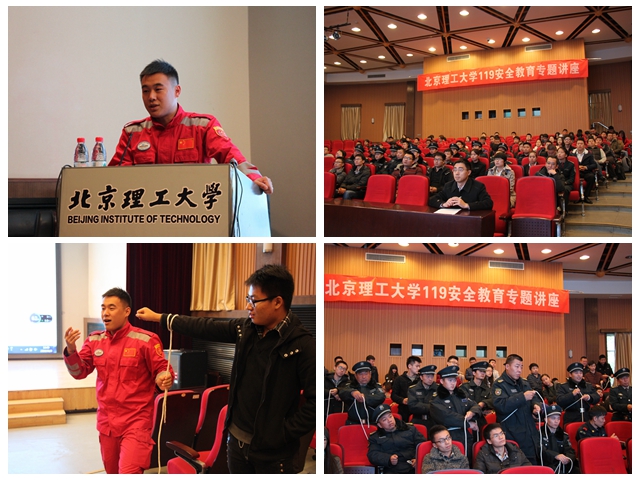 11月3日下午,学校保卫处联合学生工作处和后勤集团,邀请原中国国际救援队徐国瑞教官为学生、义务消防员代表和后勤管理服务人员代表等做了119安全教育专题讲座。徐国瑞教官以某大学宿舍火灾事故为切入点,讲述了火灾的基本知识和逃生技巧,同时对高楼逃生所需要的打绳结方式进行了详细介绍,并现场发放了绳索,让大家进行了实物演练。