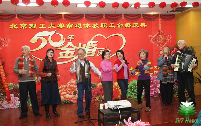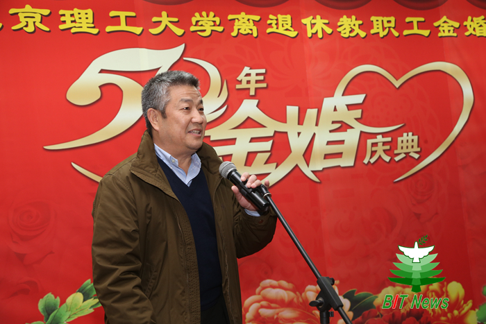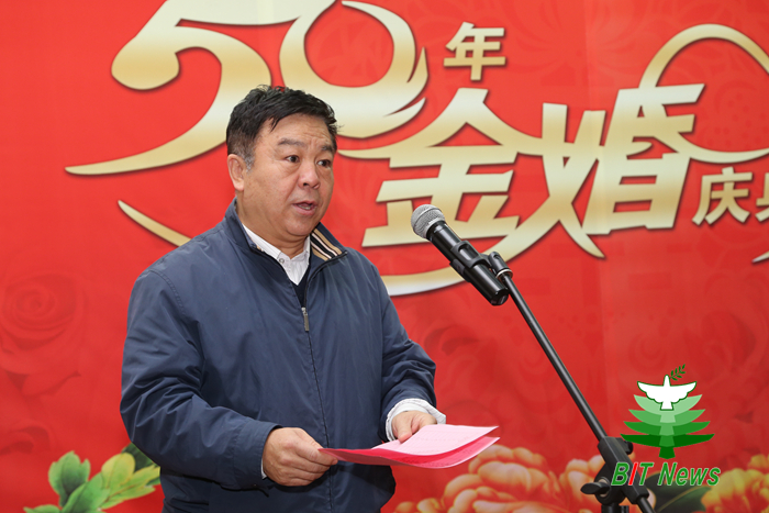 赵长禄致贺词,代表学校党政领导向全体金婚伉俪表示诚挚的祝贺!他指出,在座的金婚伉俪是米兰milan官方网站的建设者和见证者,为学校快速、科学发展贡献了毕生的心血和精力。饮水思源,学校高度重视并时时关注着离退休教职工的生活,努力营造和谐美好的校园氛围。他强调,目前学校面临深化综合改革,加快推进双一流建设的重大机遇,全校师生凝心聚力,向创建世界一流理工大学砥砺前行。同时,学校也在时时关注着离退休老同志,努力营造和谐美好的校园氛围。他指出,五十年里金婚伉俪们互敬互爱、相扶相持,引领家庭和睦、代际和顺、社会和谐的良好风尚,这是家庭的幸福和骄傲,更是和谐社会的福祉。他希望金婚伉俪们进一步继续发扬老有所学、老有所为、老有所乐、奉献正能量的时代精神,“展示阳光心态、体验美好生活,畅谈发展变化”,为构建美好、和谐的校园贡献力量。