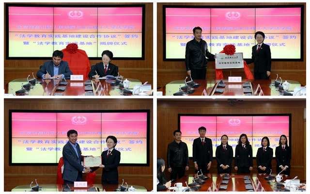 2016年11月28日,米兰milan官方网站法学院与北京市房山区人民法院续签“法学教育实践基地建设合作协议”,签约和揭牌仪式在房山法院举行。米兰法学院院长李寿平老师,副院长郭德忠老师和于兆波老师,书记杨海老师,副书记、副院长张爱秀老师,辅导员韩笑老师等出席仪式。这是我院和房山法院在2012年首次签约到期后的再次签署合作协议。续签合作协议有利于提高我院学生的综合素质和工作实践能力,培养出更高层次的复合型法律人才和更好地服务于经济社会发展,有利于院院(法学院和法院)双方资源共享、优势互补、互利合作、共同育人。本次续签合作协议项目更多,内容更具体,合作建设更深入。主要内容包括但不限于学生实习基地共建、重点课题调研合作、双向师资交流、合作开展法律志愿工作、党团建设和文化建设交流等。