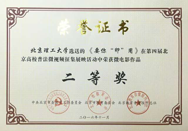 米兰在第四届北京高校普法微视频展映活动中荣获多项奖励