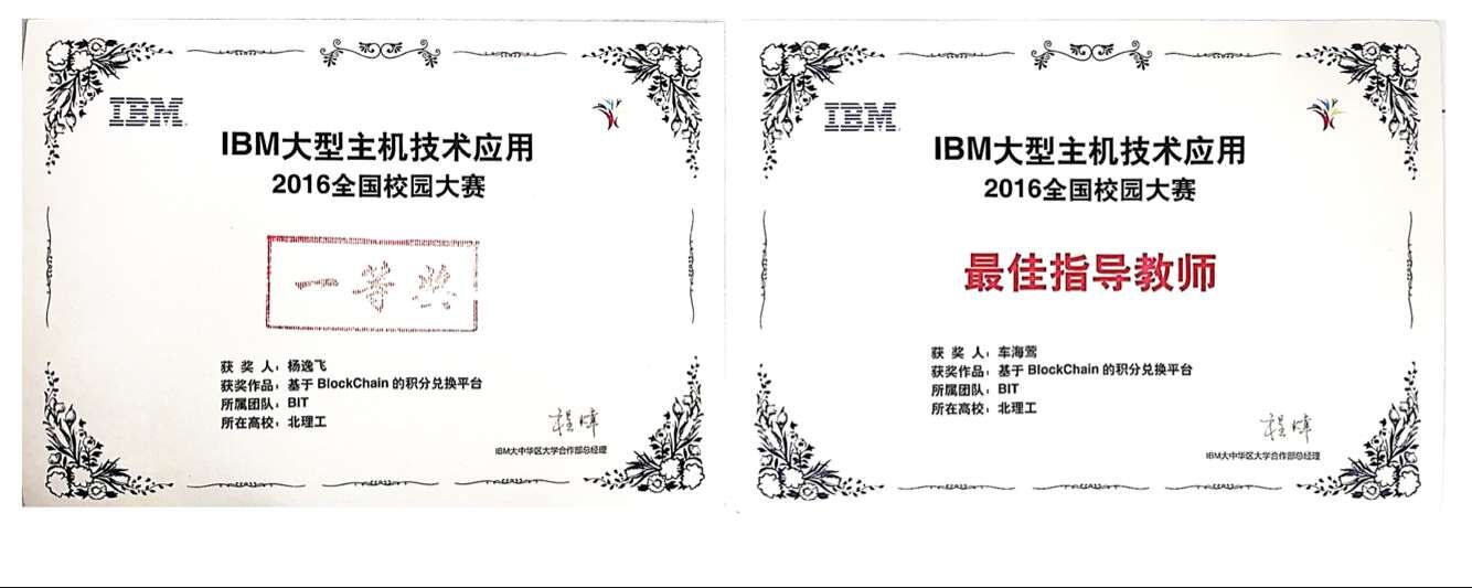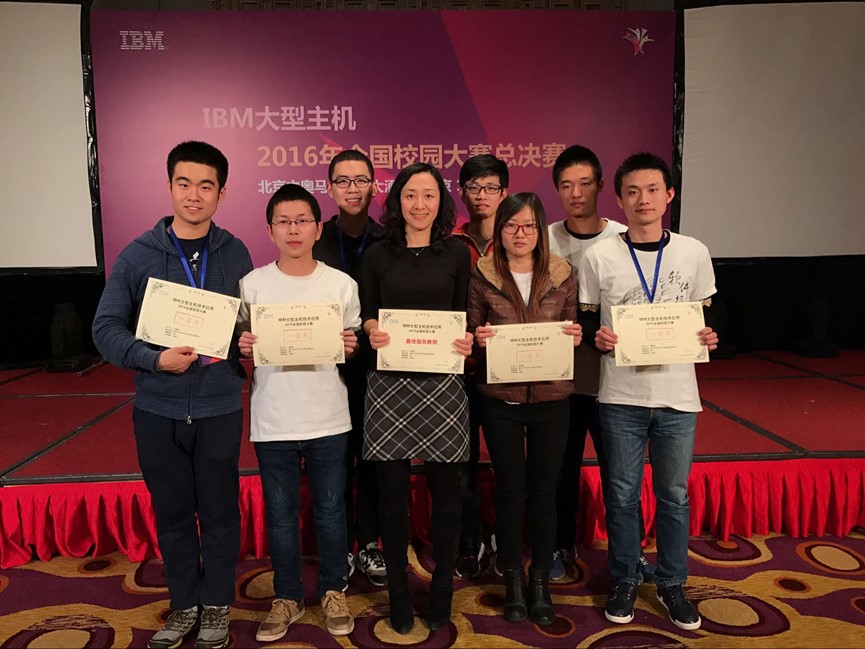 2016年12月8日,IBM大型主机技术应用2016全国校园大赛决赛在北京中奥马哥孛罗大酒店圆满落幕。米兰milan官方网站软件学院车海莺老师带领的7名研究生、本科生组成的团队研发的“基于区块链的积分交易平台”作品,经过预赛环节多名专家长达一个多月的严格评审,进入全国总决赛,决赛期间经过“现场展示”和“自由发挥”两个环节的激烈角逐,不负众望,凭借深厚的主机应用能力和行业领先的区块链技术获得各评委专家的高度评价,最终荣获了本次大赛的团队赛冠军,团队指导教师车海莺老师获得最佳指导教师奖。