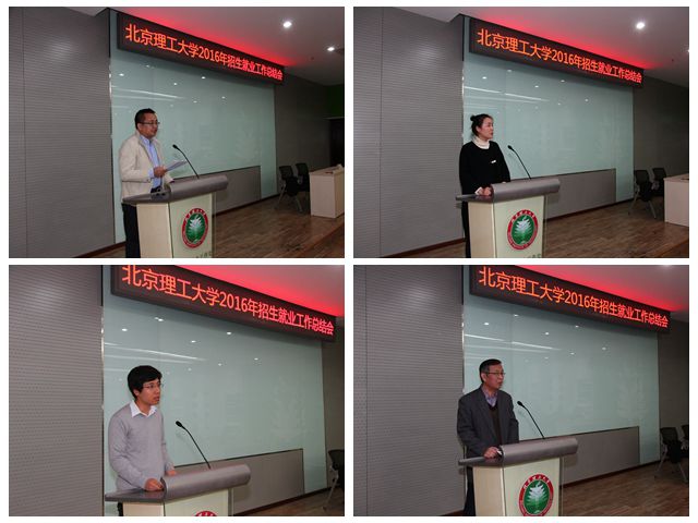 招生宣传先进集体代表、软件学院副书记、副院长陈杰浩,就业工作先进集体代表、光电学院副书记、副院长盛筠,招生宣传先进个人代表、计算机学院副院长计卫星,就业工作先进个人代表、机电学院张政老师分别作了交流分享。