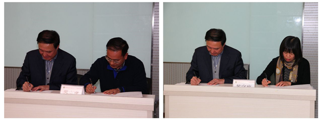 王晓锋代表学校与学院代表机电学院党委书记王伟、人文与社会科学学院党委书记娄秀红签订了《米兰milan官方网站2017年毕业生就业工作目标责任书》。