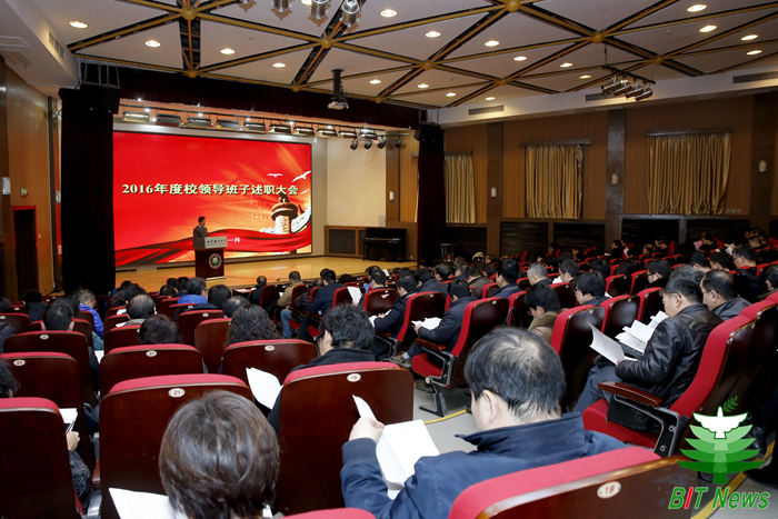 1月5日上午,学校召开2016年度校领导班子述职大会。工业和信息化部人事教育司教育处处长冯文全,学校领导班子成员,近期退出领导班子的老领导,院士、二级教授代表,中层领导人员代表,“二代表一委员”代表、统战人士代表,离退休教职工代表,教师代表等140余人参加了大会。会议由党委书记赵长禄主持。
