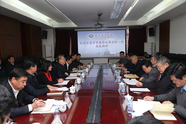 吕梁市委副书记、宣传部长雷建国,市委常委、副市长张敬平,市委常委、离石区委书记常书铭,市委常委、秘书长、政法委书记李小明,吕梁学院党委副书记周富国,市科技局局长牛鹏飞等一同调研。学校党委组织部、科学技术研究院、技术转移中心、校友会办公室、教育基金会办公室、后勤集团负责人参加座谈。