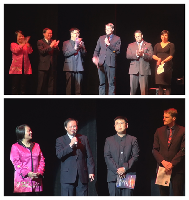 编辑:张丽霞 审核:邢清清 阅读次数:2017年1月7日晚,由萨斯喀彻温大学孔子学院和萨斯卡通华人艺术家联盟联合主办的“萨斯卡通2017新年之夜”大型文艺晚会在萨斯卡通市中心TCU剧场成功举办。来自萨斯喀彻温大学孔子学院、萨斯喀彻温大学、原住民社区和其他当地社区的200余位演职人员参与演出。萨斯卡通市长Charlie Clark出席晚会并致辞。现场观众2300余人。
