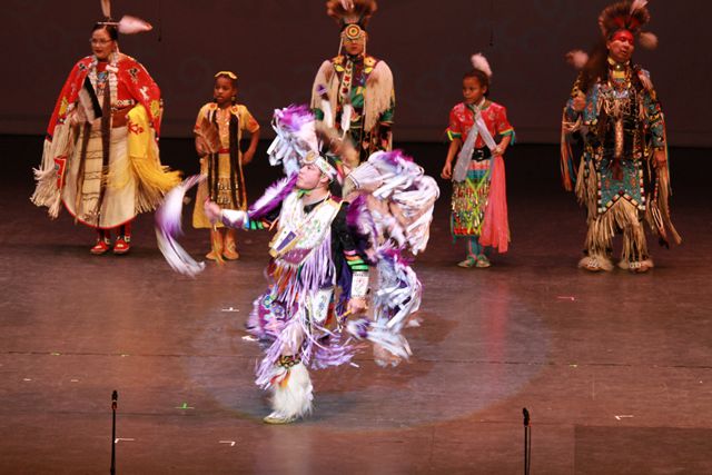 晚会在铿锵有力的加拿大原住民鼓乐声中拉开序幕,伴随着阵阵鼓乐声,身着五彩斑斓服装的第一民族载歌载舞,把观众们带入了节日的欢快气氛之中。