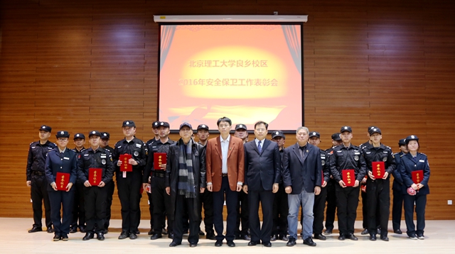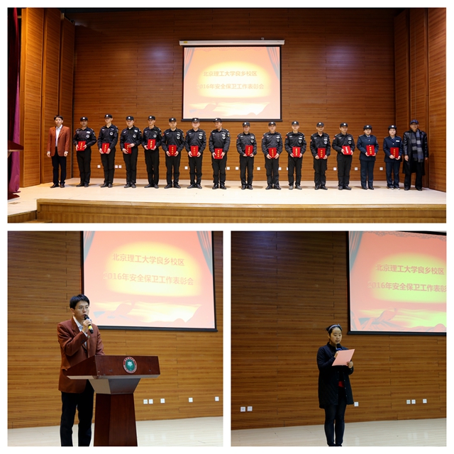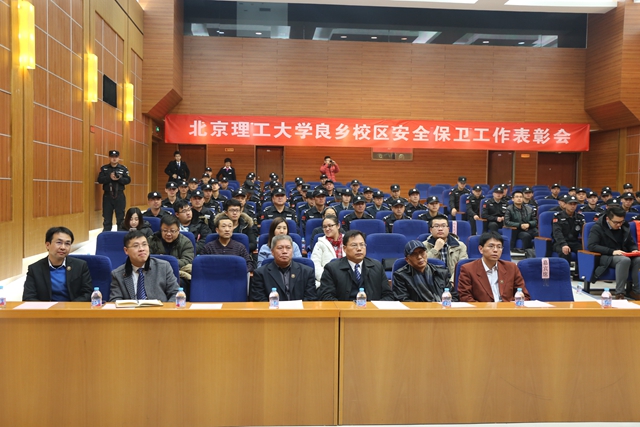 为加强良乡校区安全保卫工作,树立典型、表彰先进,良乡校区2016年度安全保卫工作表彰大会于2017年1月17日举行。米兰milan官方网站良乡校区管理处处长朱光辉、副处长霍俊斌、副处长张磊,北京时代科安保安服务总公司董事长张传桥、北京国基伟业物业管理有限公司董事长李笑天出席表彰会,校区全体保安员、师生代表共120余人参加表彰会。