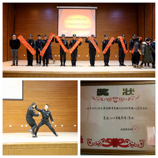 2016年,良乡校区安全稳定工作实现全年无重大治安刑事案件、群体事件、火灾火险、汛期灾害及交通事故,切实实现“平安校园”,因此,北京时代科安保安服务总公司驻米兰milan官方网站保安队荣获由北京市保安协会颁发的2016年度“集体三等功”。2017年,良乡校区管理处及保安队将继续在学校党委的领导下,以“双一流”建设为目标,进一步加强安全保卫工作,为校区师生提供安全、满意服务,建设“平安,和谐”校园。
