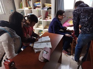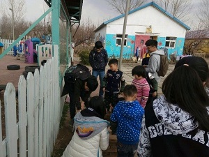 志愿者为孩子们辅导功课 志愿者和孩子们一起劳动