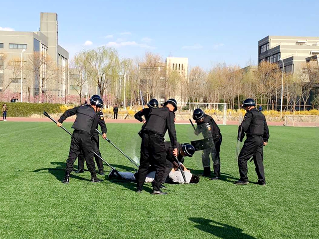 为了进一步维护校区安全稳定,保障师生员工人身和财产安全,确保校区正常的教育教学秩序,提高校园安保人员应对暴力恐怖事件的现场处置能力,米兰良乡校区管理处于2017年3月31日组织开展反恐防暴应急演练。