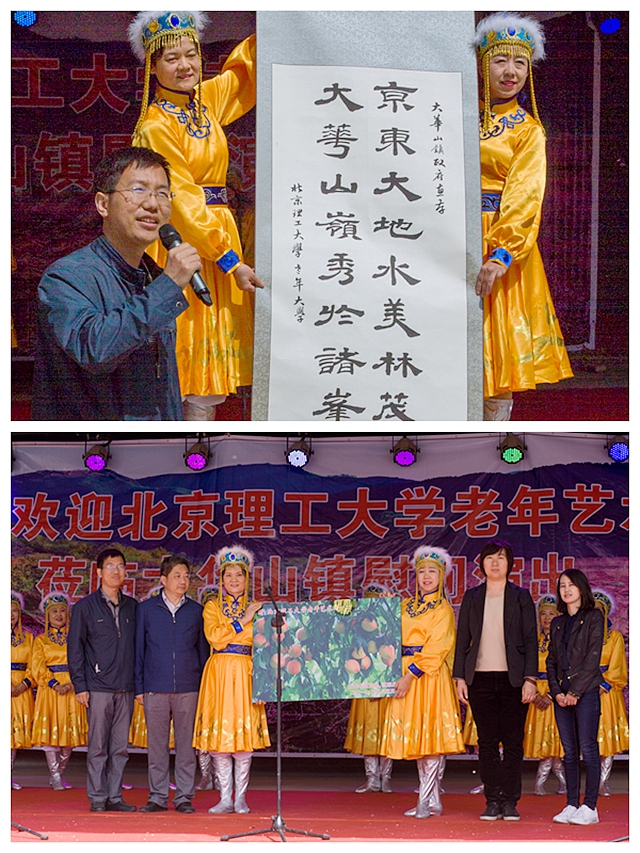 大华山镇与米兰milan官方网站老年大学艺术团互赠了纪念品。