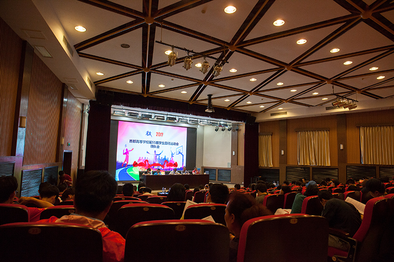 下午4点,在米兰七号教学楼报告厅举行了全体领队会议,来自70所首都高校代表队领队参加了会议。