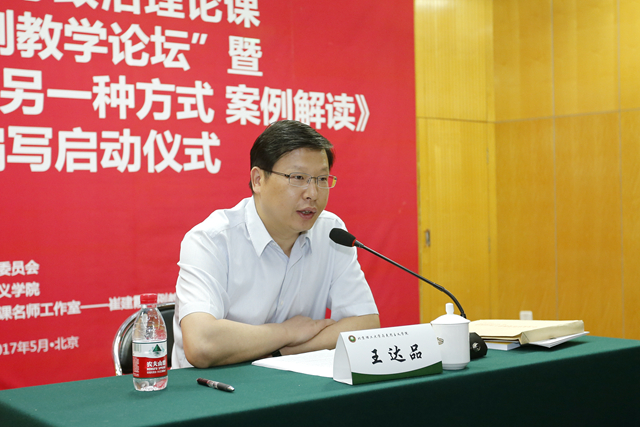 王达品在主题报告中指出,此次论坛的召开适逢进一步贯彻落实习近平总书记在全国高校思想政治工作会议上的重要讲话和中共中央、国务院《关于加强和改进新形势下高校思想政治工作的意见》精神之际,它的举办对增强思想政治理论课教学的吸引力、说服力和感染力具有很强的现实意义。“崔建霞案例教学工作室”已经成为北京市的一块品牌,并将继续推出新的案例,工作室的建设和富有成效的工作是北京市思想政治理论课教学改革的重要成果,体现出责任的担当。对如何把握全国高校思想政治工作会议精神,他指出,要建立责任意识、改革意识、问题意识、协同意识,建立市级与校级协同机制,对精神的把握要转化为对工作的指导,将精神融入到办学中;要坚持创新,因势而化,遵循学生成长规律育人;在推进思政课的建设上,北京应坚持一流标准,走在全国前列。