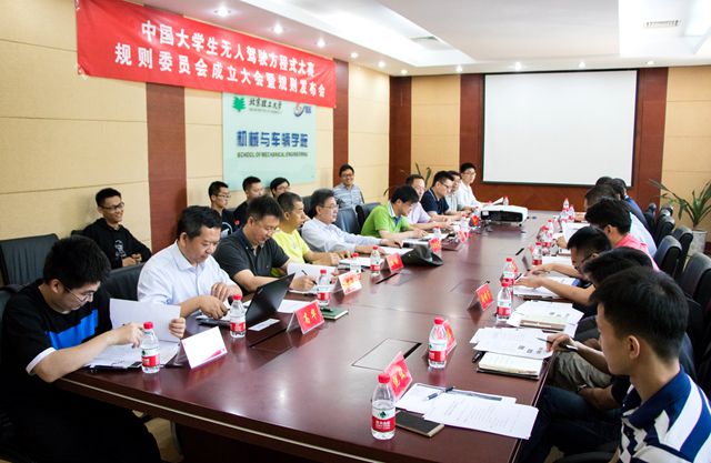 大赛规则委员会旨在通过联席会议的形式商讨和拟定比赛模式、制定赛事详细规则,以推动大赛各项筹备工作顺利进行。规则委员会全体委员、秘书经各单位推荐,高华部长宣读了《关于成立中国大学生无人驾驶方程式大赛规则委员会》的建议,全体委员就建议进行了讨论,随后举手表决,通过了委员会名单。
