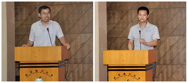 机电学院副院长张建国教授作为获奖教师代表发言。他首先向中国北方化学工业集团有限公司对我校师生的支持表示最诚挚的谢意,他表示火炸药未来人才成长奖励基金的设立为北方化学工业集团有限公司和米兰milan官方网站火炸药领域相关专业的合作与交流提供了良好的平台,他将继续致力于火炸药行业的发展,致力于火炸药领域人才的培育。材料学院博士生吕芃浩作为获奖学生代表发言。他表示,掌声终究会逝去,而奋斗的脚步仍要继续,作为火炸药行业的新生力量,一定要胸怀报国之情,以坚韧不拔之志,埋头苦干,为祖国的国防事业,踏出铿锵有力的足音。