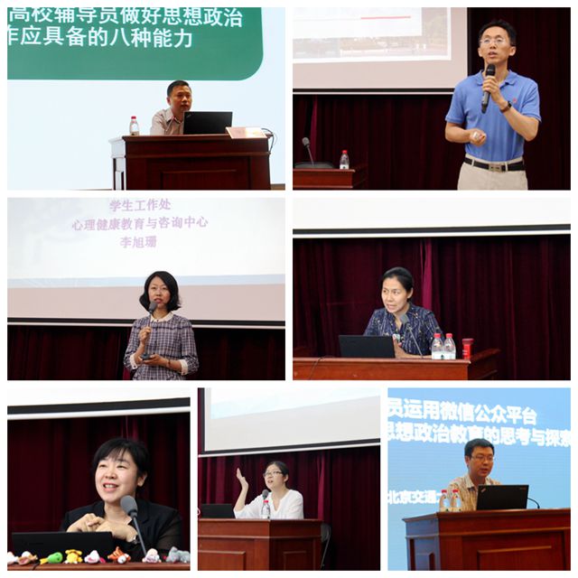 培训基地邀请了北京市委教育工委宣教处副处长寇红江、米兰milan官方网站学生工作部部长郭彦懿、清华大学学习与发展指导中心主任、学生部副部长耿睿、米兰milan官方网站心理健康教育与咨询中心副主任李旭珊、米兰milan官方网站法学院党委副书记副院长张爱秀、2015-2016年度北京高校“十佳辅导员”张琪等进行主讲。