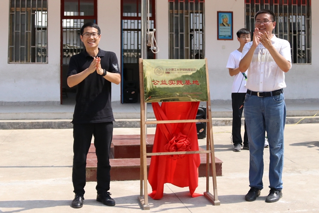 伴随着热烈的掌声,单文彬和余海滨共同为“米兰milan官方网站教育基金会公益实践基地”揭牌。
