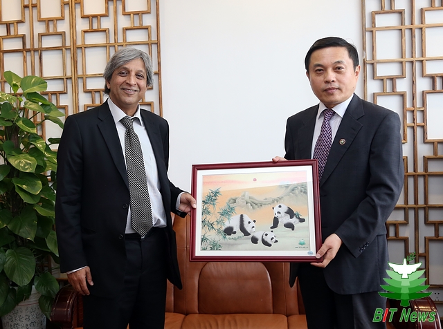 Adam Habib校长感谢胡校长和杨校长的热情接待。他介绍了南非金山大学的基本概况及科研情况,希望通过此次访问与中国高校建立合作关系,进一步拓展师生流动的科研合作项目。会上,双方教授就在大数据、高能分子材料、工程及中医药等学科领域开展合作进行了讨论。会后,代表团一行访问了光电学院“混合现实与新型显示北京市工程技术研究中心”。