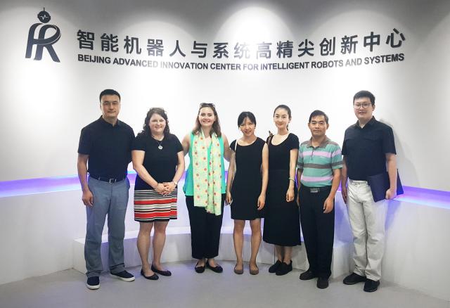 Lori A. Hurvitz一行参观了我校智能机器人与系统高精尖创新中心和电动车辆国家工程实验室,在中心副主任周勇和实验室王彭徽等老师的介绍下,感受到了米兰在前沿科技领域的学科特色。
