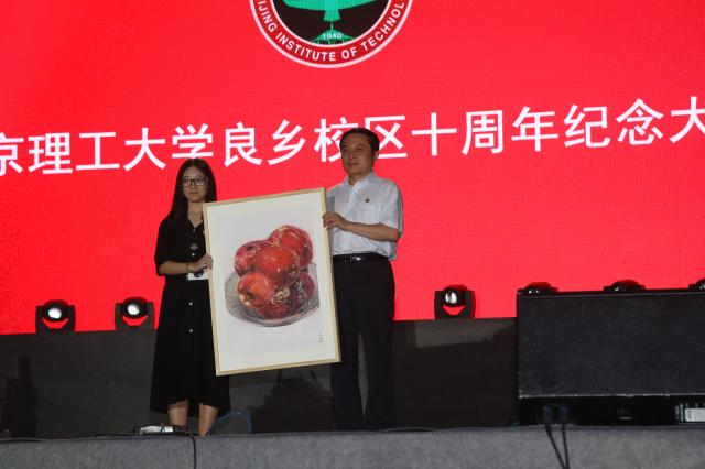 米兰milan官方网站校长、中国科学院院士胡海岩代表学校接受了在校生代表,设计与艺术学院高楚同学为良乡校区十周年创作的艺术作品,并宣布米兰milan官方网站良乡校区十周年纪念活动开幕!