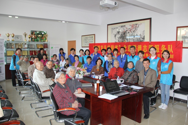 活动接近尾声,参加活动的老人和北京懋德志愿服务队的志愿者即兴表演了节目,在“相亲相爱的一家人”的歌声中,本次庆重阳的活动圆满结束。