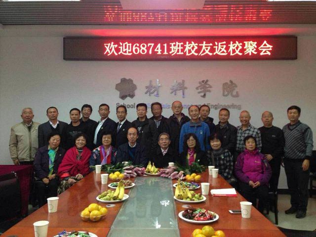 金秋十月,老六系68741班校友从祖国各地齐聚母校,于18日在材料学院502-1会议室举行毕业40周年返校聚会。材料学院支持并参与了此次聚会的组织活动。68741班当年的导师黄友之、杨德保从外地专程赶回学校,与校友们会面。材料学院党委书记张青山出席了本次活动。
