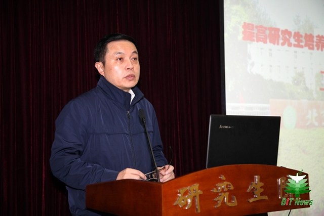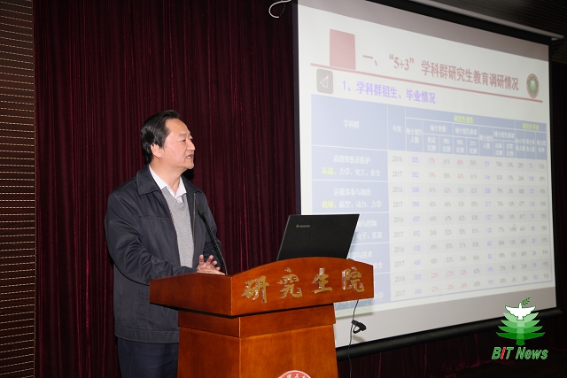 研究生院常务副院长王军政就学校“双一流”建设“5+3”学科群的研究生教育调研情况、2017年研究生教育工作及存在问题、下一步工作思路及主要举措三个方面进行了详细汇报,重点介绍了招生政策改革、培养方案优化、课程质量提升、国际化教育、博士生分流淘汰机制、导师分类管理、服务与保障七个方面的新举措。