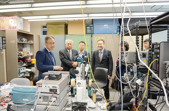 12月14日上午,李和章一行访问了位于盖尔纳斯维尔的佛罗里达大学(University of Florida)。佛罗里达大学成立于1853年,是佛罗里达州规模第二大的公立研究型大学,在全美公立研究型大学中排名第9位。我校教师在机械工程、软件、信息技术等领域与佛罗里达大学有学术交流,但尚未建立起学校或学院间合作关系。此次访问促成了两校校级合作协议的签署。代表团一行访问了佛罗里达大学工学院,与电子与计算机工程系主任John Harris,化学工程系主任Carlos Rinaldi等进行了会谈,并参观了电子工程系与化学工程系实验室,双方拟在学术交流的基础上,推动本科生毕业设计和研究生联合培养。在佛罗里达大学国际中心,李和章副校长与国际中心主任Leonardo Villalon就推进两校间的深入合作交换了意见,拟在两校合作协议的框架下,推动更多实质性合作。