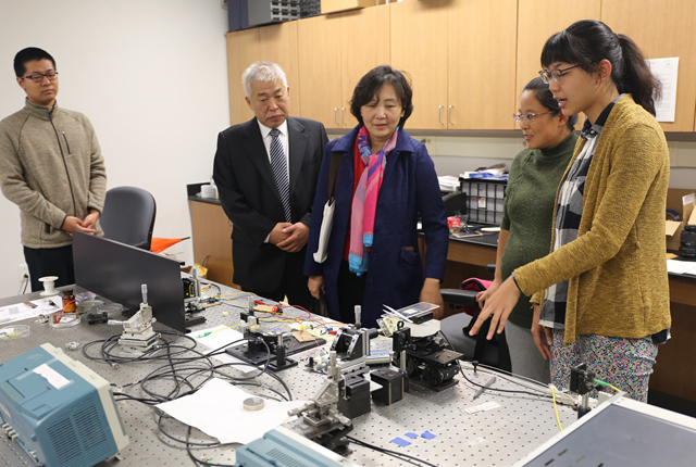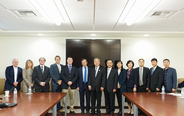 12月13日上午,李和章率代表团访问了位于坦帕的南佛罗里达大学(University of South Florida),与国际事务协理副校长Adriana Marales,工学院国际事务常务副院长Jose Zayas-Castro及工学院相关系所的主任进行了会谈。宾主介绍了各自大学的教学、科研及国际化发展战略,围绕学生交换、教师交流和相关学科的合作深入交换了意见。南佛罗里达大学建于1956年,是佛罗里达州立大学系统中规模最大的旗舰型学府,近年来在工程、医学、化工等领域发展迅速,并积极实施国际化战略,为本校学生创造赴海外交流学习的机会。双方认为两校的优势学科有很大的相似性,计划以促进学生交换和教师交流为开端,进一步推动教学合作与学科对接。代表团随后参观了工学院传感器实验室和南佛罗里达大学高新技术创业中心,研究人员详细介绍了新型传感器的开发与应用,以及与企业合作进行科研创新的全过程。