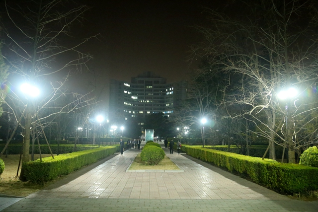 这都得益于近期学校实施的校园亮化工程一期改造,为贯彻落实2018年学校工作报告精神,实施校园主干道路、运动场所等区域亮化工程,打造美丽北理。2018年3月23日,后勤集团组织施工队伍,对主楼周边、中心花园、教学楼等区域的庭院灯进行亮化工程的一期改造。