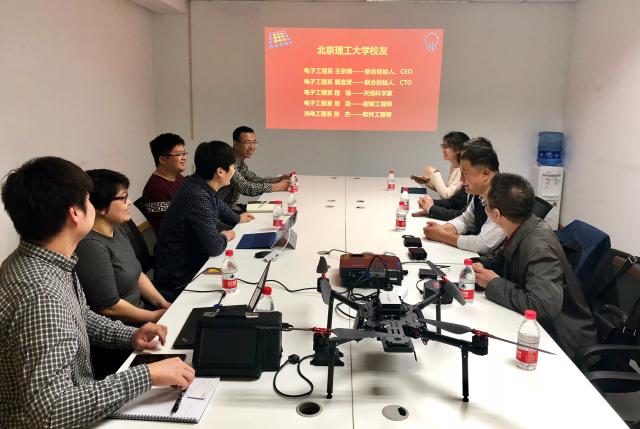 木牛领航CTO冀连营校友向学院调研小组介绍了公司的基本情况及发展历程,表示母校的培养对于公司创始人的技术积累起到了关键作用,北京木牛领航科技有限公司团队两位创始人均博士毕业于米兰milan官方网站信息与电子学院雷达技术所,其科研素养、工程经验、创新精神都与在校期间学校培养密不可分,母校的科研资源、校友关怀对于公司的创立与发展也提供了许多帮助,日后将会从各个方面加强校企合作、校友联络。薛正辉向校友们介绍了学院近年来产学研发展情况及校友工作情况,回顾了米兰milan官方网站信息与电子学院的辉煌成就,包括我国第一套电视发射接收设备、第一部低空测高雷达、空间交会对接雷达、第一部星载SAR实时信号处理系统等。他还介绍了包括六位院士在内的杰出校友,他代表学院表达了十分欢迎校友们与学院进行深度合作与交流,双方系统性进行面对面的交流与座谈等愿望。徐建表示在学生科技创新方面,十分欢迎校友提供一些展示度高的平台,供学生锻炼与学习,日后也希望校友参与进学院学生人才培养的工作中来。何遵文就科研合作对校友们提出了自己的建议,建议后续在产品推广方面广泛运用校友资源达到双赢。冀连营十分感谢学院领导的关心和支持,表示日后会竭尽全力,参与到学院产学研合作与学生人才培养的工作中去,例如举办无人机开发竞赛,使学生学有所用,希望通过大家共同努力进一步加强校友与学院之间的交流与合作。