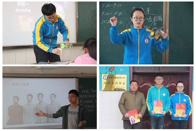 向阳小学建地处偏僻,硬件条件差。到校之初,宣讲小组克服了条件简陋等困难。没有办公室,大家就把几张木桌子拼在一起备课;没有宿舍,同学们就搬来上体育课用的垫子,铺上被子将就入睡。第二天起来,一看到孩子们渴求知识的目光,宣讲小组的成员们立即精神百倍。成员们用生动的教学方式将党的十九大精神融入到课程中。小组成员何循洁用一首改编的歌曲《新时代,刚好遇见你》,讲述了新时代党和国家的辉煌成就。小组成员袁祥博则通过天宫一号发射、蛟龙入海等视频,讲述了中国在新时代取得的辉煌成就,让小朋友们畅想未来,树立起民族自信心与国家自豪感。“科技创新是富国强国的重要手段” ,宣讲小组成员李致远、杨雨晴查阅了大量资料,将实践与理论相结合,准备了十余种科普小实验,小朋友们在欢声笑语中感受物理学、化学的魅力。 “少年智,则国智;少年强,则国强” ,宣讲小组成员桂碧麟设计了强身健体、妙趣横生的智力小游戏,带领孩子们进行了素质拓展。