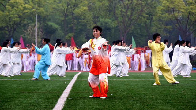 伴着热烈的掌声与欢呼声,精彩的体育表演开始。白鹤翱翔,飘逸飞扬,由我校200余名教职工组成的表演团队为大家奉献了精彩的太极拳表演,展现了“北理体育、师生共建”的良好校园体育文化氛围。