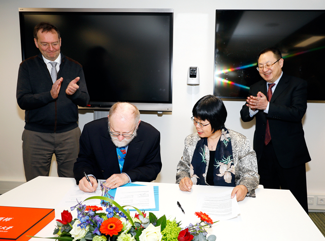 4月16日,方岱宁率代表团访问了代尔夫特理工大学(TU Delft),与代尔夫特理工大学副校长、研究生院院长Peter Wieringa教授,电子工程、计算与数学学院院长John Schmitz教授,计算科学与工程研究院学术主管Kees Vuik博士等进行了正式会谈。方岱宁与Wieringa认为两校近年来研究生规模和教育水平发展迅速,两校在学科设置和科研方向上有很多相似之处,双方都表示支持米兰milan官方网站与代尔夫特理工大学相关学科的深入合作,推动教授间的学术交流和联合培养博士生。在方岱宁和Wieringa的共同见证下,米兰数学与统计学院院长田玉斌教授与代尔夫特理工大学电子工程、计算与数学学院院长John Schmitz教授签订了学院间关于博士双学位项目的具体协议。