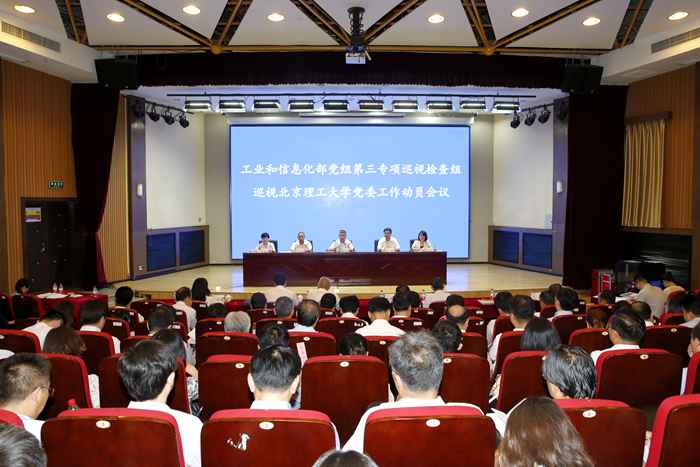 根据中共工业和信息化部党组统一部署,6月19日,部党组第三专项巡视检查组专项巡视检查米兰milan官方网站党委工作动员会在我校七号楼报告厅召开。部党组第三专项巡视检查组组长钟志红同志传达部党组有关要求并通报工作安排,部党组巡视工作领导小组成员、财务司司长姜子琨同志代表部党组巡视工作领导小组提出工作要求,校党委书记赵长禄同志主持会议并作表态发言。专项巡视检查组副组长张海兰同志及全体组员,全体在校校领导,校长助理,各基层党委、党总支、直属党支部书记,各部门、各单位行政负责人,党务干部代表,师生党支部书记代表和师生党员代表200余人参加会议。