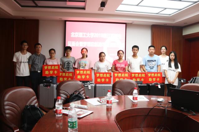 资助仪式上,教育基金会的老师和志愿者共同为到场的9位家庭经济困难新生发放行李箱、水杯和资助指南,并将于开学当天为他们发放“梦想启航”助学金。