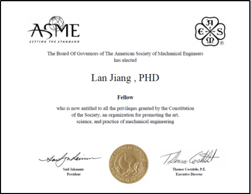 美国机械工程学会成立于1880年,是一个非营利性会员组织,旨在促进所有工程学科的协作、知识共享、职业充实和技能开发,以实现帮助全球工程界开发解决方案以使生活和生计受益。该学会在机械工程及其相关领域具有很大的权威性和广泛的影响力。经过几十年的发展,已在151个国家拥有130,000多名会员,管理着全世界最大的技术出版署,每年主持30个技术会议、200个专业发展课程。 美国机械工程学会会士(ASME Fellow)每次评选的获奖人数不超过会员总数的千分之一,且评选过程极为严谨。