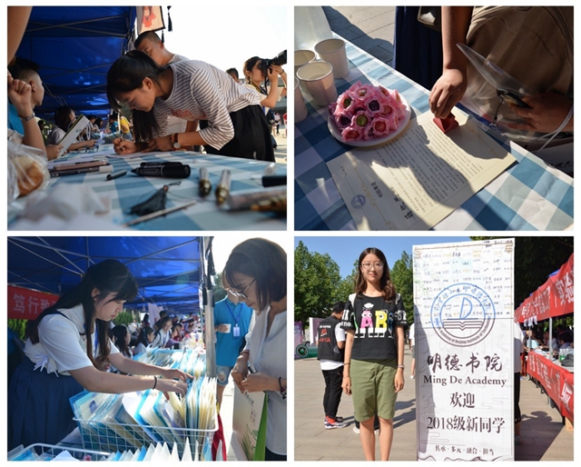 8月24日迎新当天,明德书院报到站环绕着2018级新生涉及的17个民族挂饰,与书院志愿者们身着的带有民族文化元素的制服相互辉映,让来自少数民族的同学顿生亲切,同时明德书院“传承、多元、融合、担当”的院风也得以体现。一个个“全新”的名字出现在“明德书院欢迎2018级新同学”的拼图板上,他们每一个名字都将为书院建设添砖加瓦,描绘出书院未来更绚丽的色彩。