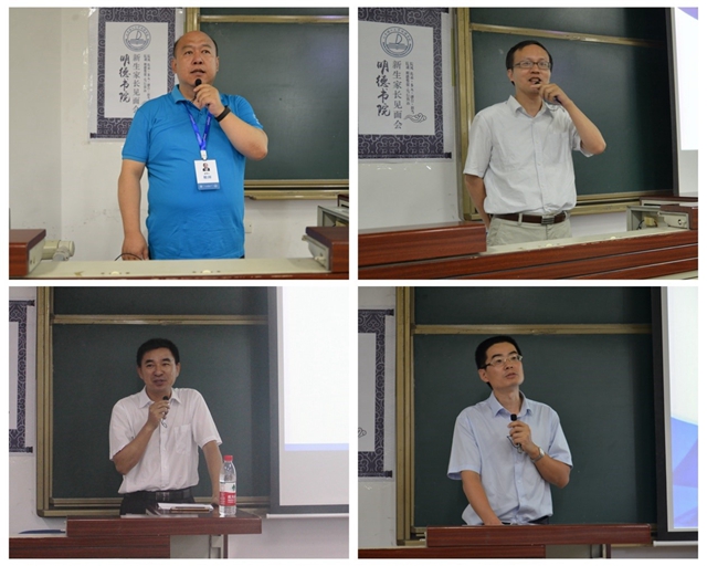 在报到日下午召开的新生及家长见面会上,明德书院全体领导、学术导师、学育导师、朋辈导师及人文学院、法学院、外国语学院的领导、老师们到场与新生及家长交流。明德书院院长曾粵兴表达了对明德书院学子的殷殷期盼与真诚祝愿:“明德书院的学生能够胸怀天下,以振兴中华民族、振兴祖国为己任,扬起新的风帆,在知识的海洋里修炼出良好的伦理道德和人文情怀,懂得并追求科学之真、人文之善、艺术和生活之美。”人文与社会科学学院院长李健、法学院院长李寿平和外国语学院院长李京廉向学生和家长们介绍了各学院的历史沿革、基本情况、专业特色、师资队伍等多方面信息,展示了各学院的特色与魅力。