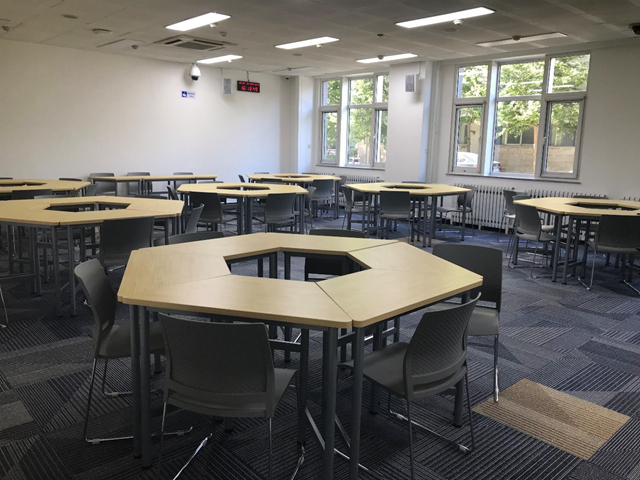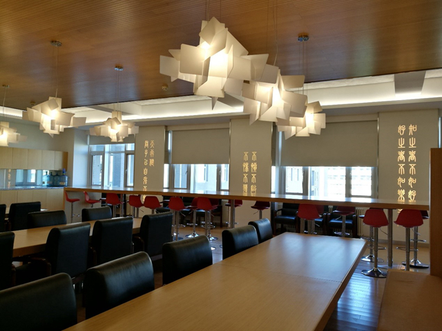 上课围圆桌而坐,椅子任意旋转,自由讨论更加方便;学术吧台宽敞明亮,便于使用电脑等研究设备;学术报告厅可以音像同传,精彩讲座可以两厅同享;开放式的服务大厅,宽敞明亮;咖啡、沙发、舒适的桌椅,课间休息,教师们有了专属场所……这些焕然一新的种种变化,来自于米兰中关村校区的研究生教学楼。
