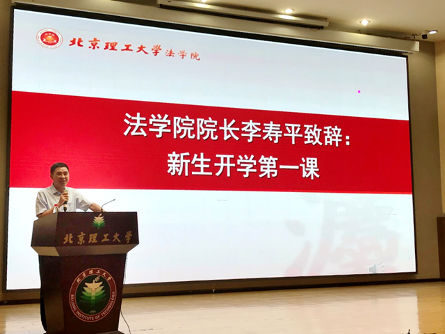 李寿平向全体2018级研究生新生致辞,为新生讲授了“开学第一课”。李寿平首先对全体新生表示祝贺,提出在法学院建院十周年暨法学教育二十五周年之际,学院的规模已经进入一个新的发展时期,法学院始终以培养合格的学生为使命。同时,立足当下科技发展后全球化的时代特点,分析了现阶段中国法律人面临的机遇和挑战,提出在当前时代背景下,法律人必须是国际化的、复合型的、胸怀壮志和有时代担当的,希望同学们既要有新的梦想和目标,也要有实干精神,更要保有法律人的敬畏和底线,为成为一名新时代的合格的北理法律人不断前进。