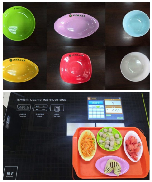 新改造的第三食堂不仅环境优雅,还蕴含了先进的科技元素。就餐师生可以从高、中、低档菜品自选窗口取餐,然后将餐盘放置在智能结算平台上,不同颜色的餐盘内含芯片,平台可以进行自动识别,不到1秒钟的时间里,智盘就显示出餐盘数量和菜品总价,师生们只要轻松刷卡就可以结算,大大节约了师生们的就餐等候时间。