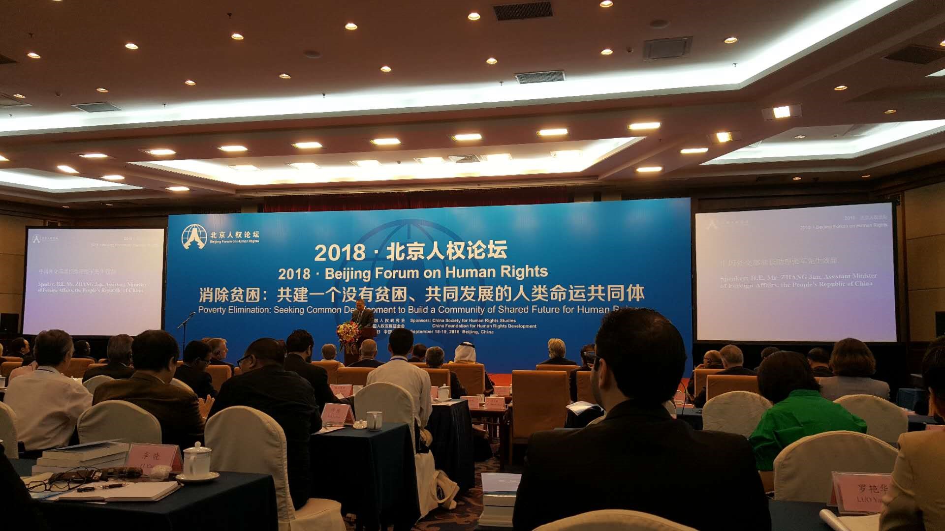 “2018·北京人权论坛”于9月18至19日在北京举行。本届论坛以“消除贫困:共建一个没有贫困、共同发展的人类命运共同体”为主题,来自近50个国家、地区和国际组织的官员、专家学者、知名人士等200余人出席。中共中央政治局委员、中央书记处书记、中宣部部长黄坤明,全国人民代表大会副委员长、中国人权研究会会长向巴平措,第十一届全国政协副主席、中国人权发展基金会理事长黄孟复,中国外交部部长助理张军,联合国粮农组织农村减贫项目主任Benjamin Davis等出席开幕式并致辞,全国人大常委会委员、全国人大监察和司法委员会副主任委员、中国人权研究会副会长徐显明,联合国人权高专办国别人权审查司司长Gianni MAGAZZENI等作大会主题发言。