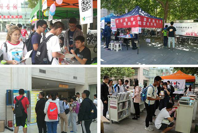 遇见·图书馆。9月16日至23日,连续八天的外场活动宣传,共三个学生社团和学生会,百余名学生工作人员的直接参与,一千多位新同学踊跃参加,图书检索比赛、座位预约系统宣传、图书馆数字资源推介、书刊派送活动等丰富的活动展现在同学面前,尤其是书刊派送活动,同学的响应度特别高,共派发了2773册书刊。除此之外,图书馆还专门为每项活动内容都设计了印章图案,集内涵与品质于一体,彰显活动特色!