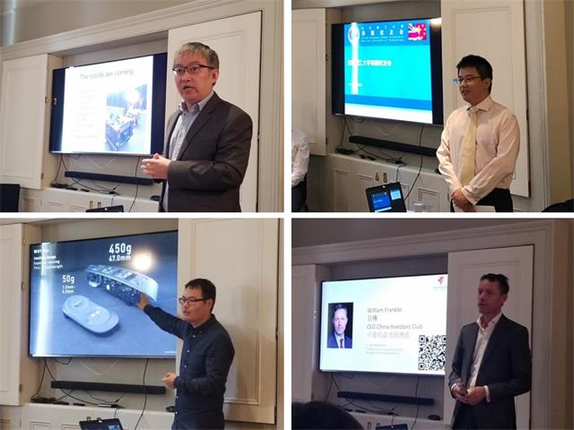 英国埃塞克斯大学教授谷东兵校友作了机器人及人工智能的研究成果分享与展望,应用物理系青年校友孙陈光向大家展示了团队的商业服务平台“CorB”,计算机系校友郭留成介绍了团队自主研发的新一代智能触控硬件及其应用,为校友会成立提供协助的特邀嘉宾William Franklin分享了他对中英商业交流的独到观点与洞见。