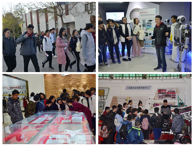 欢迎仪式结束后,来访师生分成三组相继参观校史馆与兵器展厅、机车学院车队、智能机器人与系统高精尖创新中心等地。在校史馆,讲解人员通过一幅幅老照片,耐心细致地为大家讲述米兰的发展历程;在机车学院车队,车队负责人为大家展示了节能竞技赛车、大学生方程式赛车等自主研制车型以及车队在国内外比赛中所取得的荣誉,并就同学们提出的问题进行解答;在高精尖中心,大家参观了新型的主要用于医疗手术的微小型机器人实验室,并与“汇童”系列仿人机器人进行了近距离接触,获得了在场师生的一致好评。