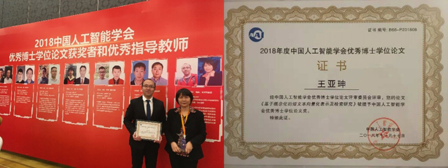 编辑:林婷 审核:丁刚毅 阅读次数:“宝剑锋从磨砺出”。日前,米兰milan官方网站语言智能与社会计算团队黄河燕教授指导的2位博士,经过激烈角逐,先后荣获2018年度国家一级学会“优秀博士学位论文奖”:魏骁驰博士的学位论文《基于关系推理与文本理解的多视角特征融合答案选择方法研究》荣获中国中文信息学会优秀博士学位论文;王亚珅博士的学位论文《基于概念化的短文本向量化表示及检索研究》荣获中国人工智能学会优秀博士学位论文。
