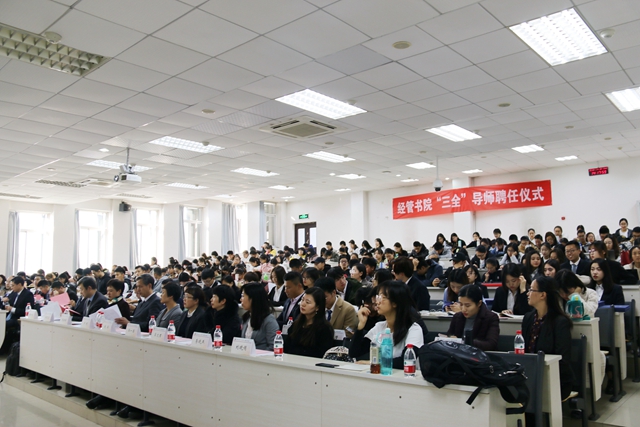 聘任仪式上,管理与经济学院副院长颜志军宣读“三全”导师聘任决定。管理与经济学院院长、经管书院院长魏一鸣和学院党政联席会成员先后为学术导师、德育导师、学育导师和朋辈导师颁发了聘书。学育导师代表孙士伟、朋辈导师代表吉嫦婧进行了发言。