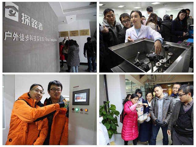 三校老师先后对探路者产品研发中心实验室、文化展、样品间等进行了参观。老师们认真聆听实验员的讲解,亲身体验恒温恒湿测试、耐折试验、极地环境测试等,切身感受民族品牌在自主研发过程中的执着与坚守。